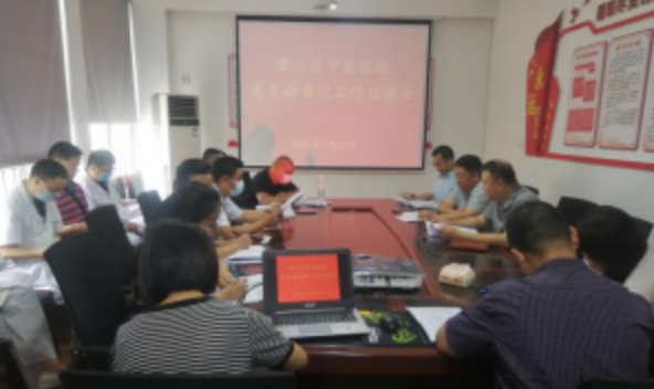 7月23日上午,我院党总支组织召开党支部书记工作培训会,对医院近期党史学习教育工作进行安排部署,对党员在线交纳党费工作进行现场培训,医院党总支委员、各党支部书记共计18人参