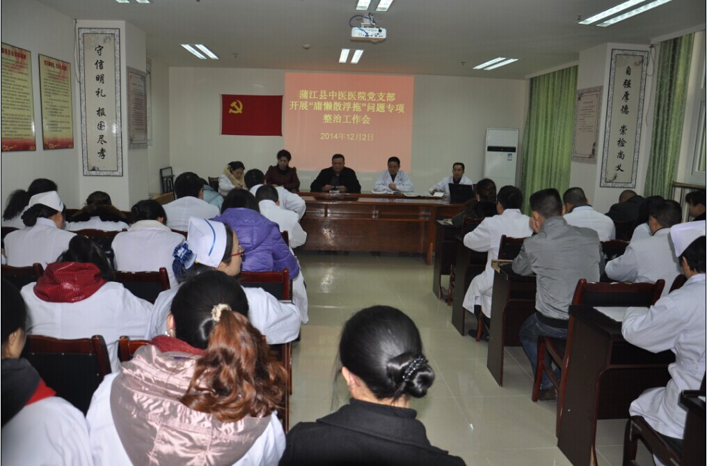 会上,党支部书记黄建云认真传达了县委、县卫生系统“庸懒散浮拖”问题专项整治工作部署会议精神,并全文宣读了我院《开展“庸懒散浮拖”问题专项整治工作的实施方案》。结合群众路线教育实践活动,学习了习近平总书记系列重要讲话精神,对专项治理“庸懒散浮拖”工作进行了动员部署。