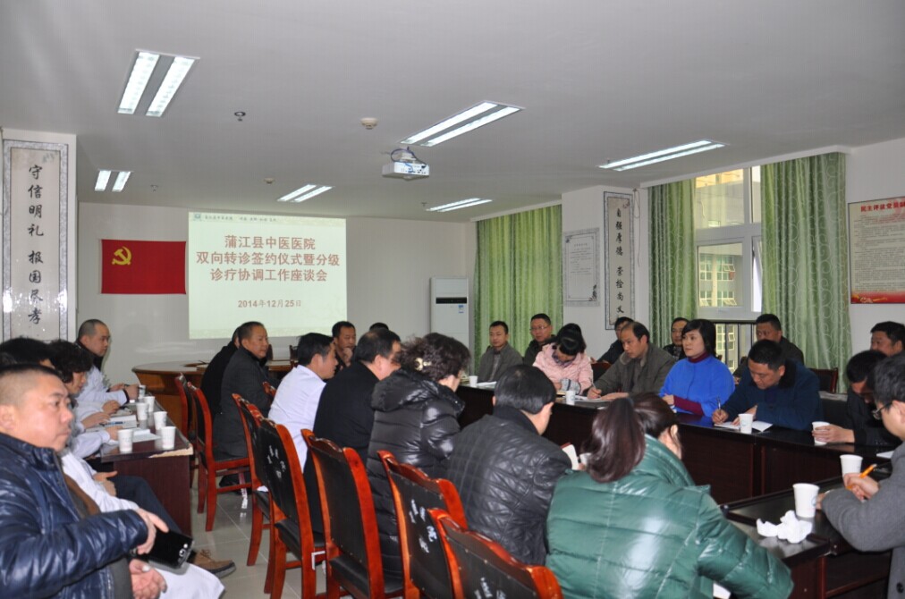 12月25日下午4:00,我院“双向转诊签约仪式暨分级诊疗协调工作座谈会”在四楼小会议室隆重举行,院级领导班子成员、各住院科室主任及全县各基层卫生院领导共计30余人参加了座谈。卫生局副局长郑莉出席会议并讲话,会议由党支部书记黄建云主持。